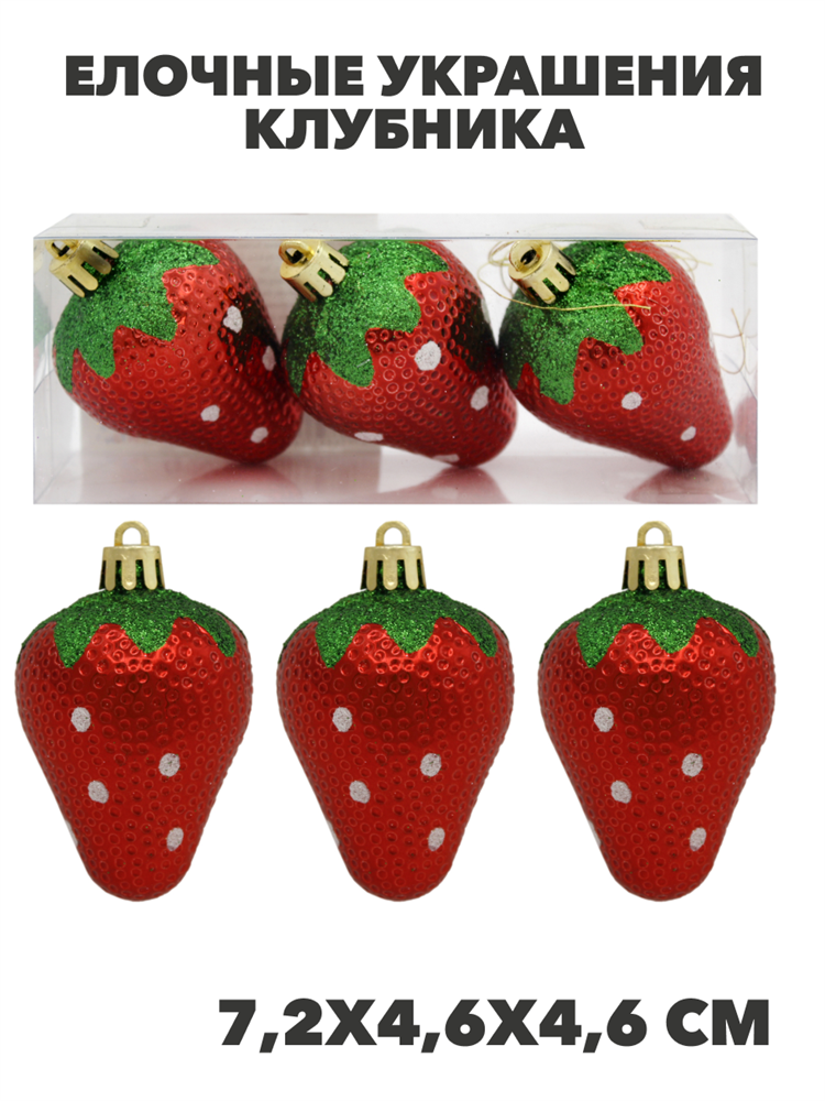 Елочные украшения Клубника 3шт 4,3х4,3х7,1см Цвет: красный, y3050303398