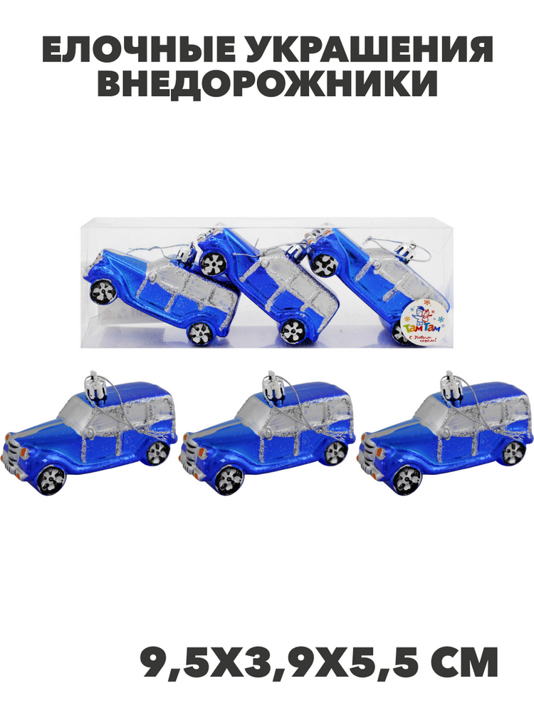 Елочные украшения Внедорожники 3шт 9.5х3.9х5.5см, Цвет: синий, y3050303401