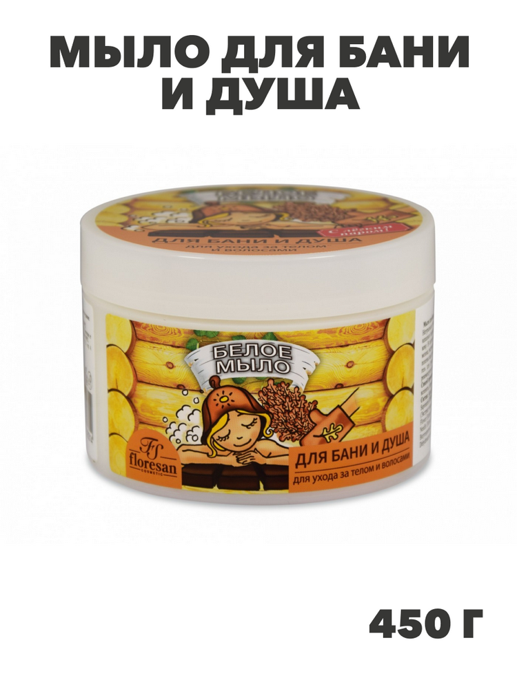 Флоресан, Floresan, Мыло для бани и душа, для ухода за телом и волосами натуральное таежное Белое, Ф-39, 450 г, n3557037403