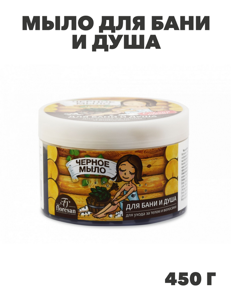 Флоресан, Floresan, Мыло для бани и душа, для ухода за телом и волосами натуральное таежное Черное, Ф-37, 450 г, n3555037401