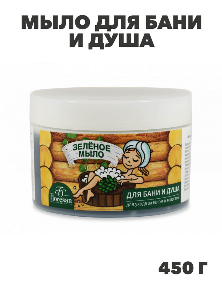 Флоресан, Floresan, Мыло для бани и душа, для ухода за телом и волосами натуральное таежное Зеленое, Ф-38, 450 г, n3556037402