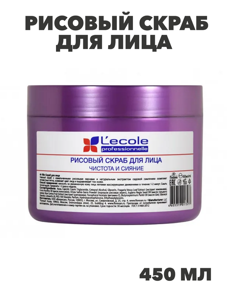 Флоресан, Floresan, Рисовый скраб для лица "Чистота и сияние", Садовая земляника, Ф-765v, 450 мл,, n3505765765
