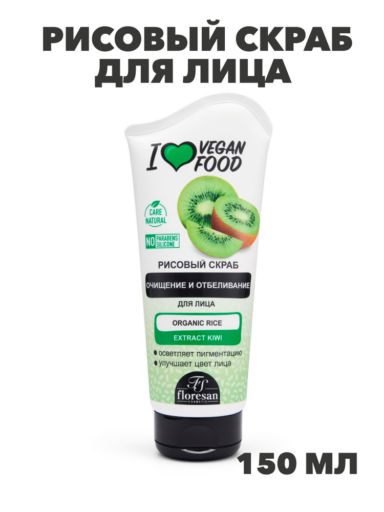 Флоресан, Floresan, Рисовый скраб для лица "Очищение и отбеливание", Киви, Ф-763b, 150мл, n3500000763
