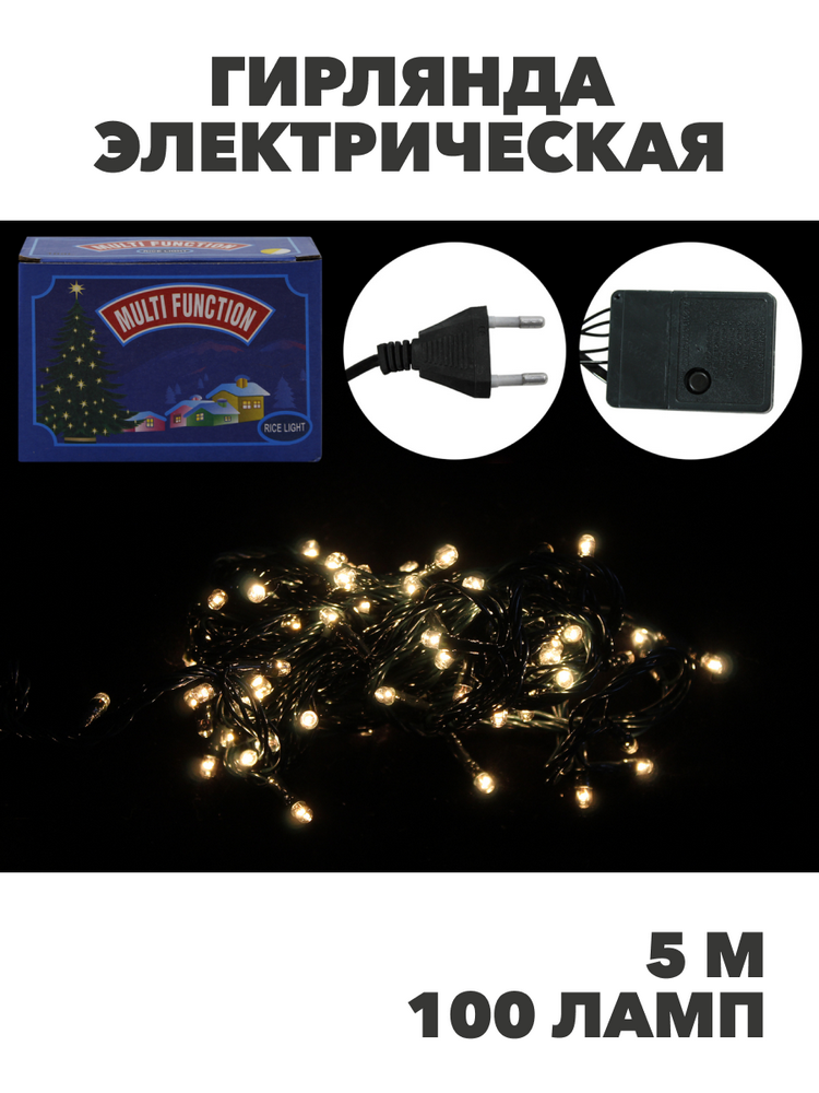 Гирлянда электрическая Там Там 5.0м 100 ламп с контроллером (Цвет ламп: теплый белый Цвет кабеля: зеленый), y3050303424