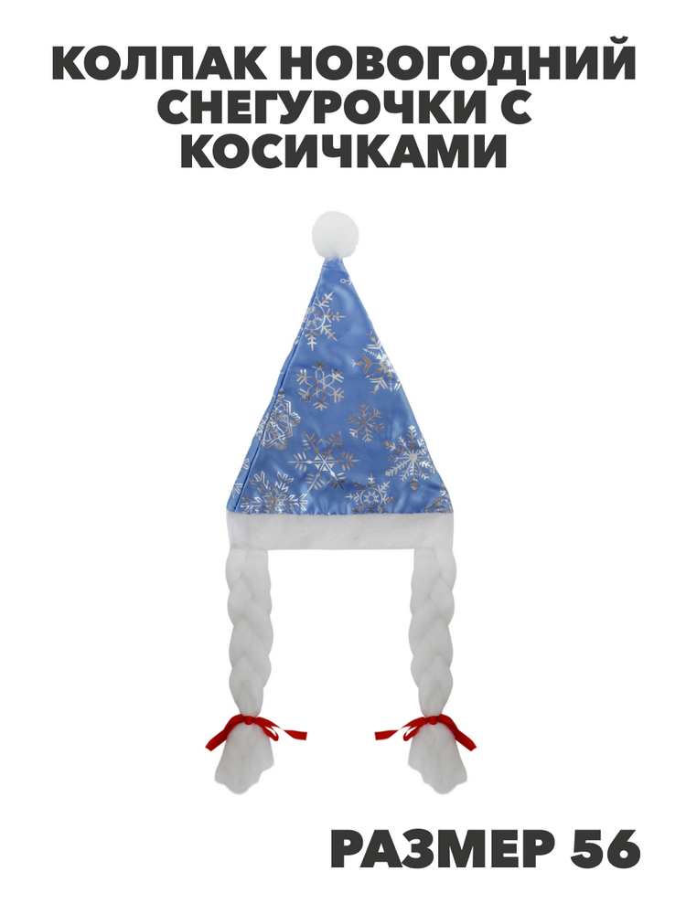 Колпак новогодний Снегурочки с косичками Размер: 56 Цвет: синий, y3050303413