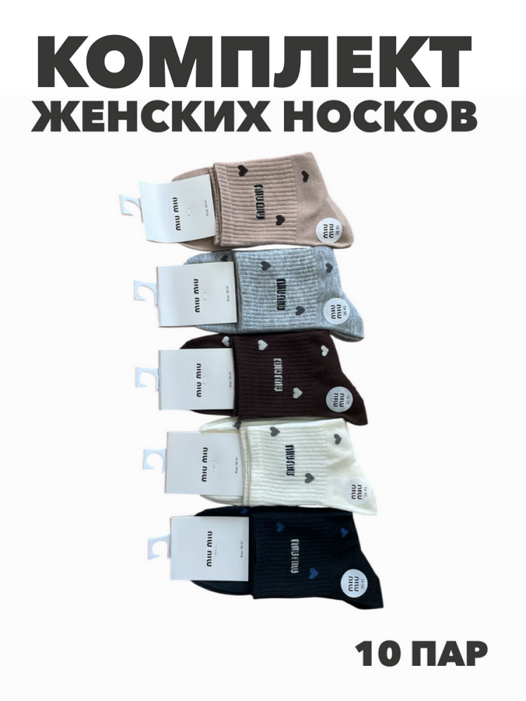 Комплект носков женских тонких "MIU MIU" 10 пар, МИКС, r3100103004