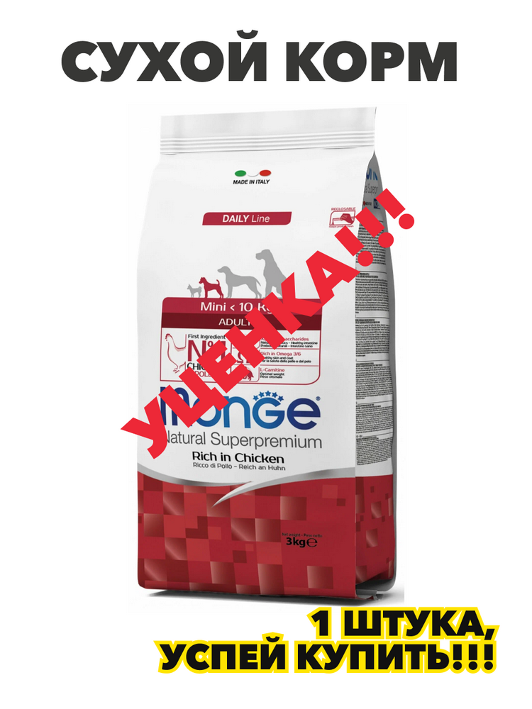 Корм Monge Mini Chicken для собак малых пород, с курицей, 7.5 кг, n4145-494448