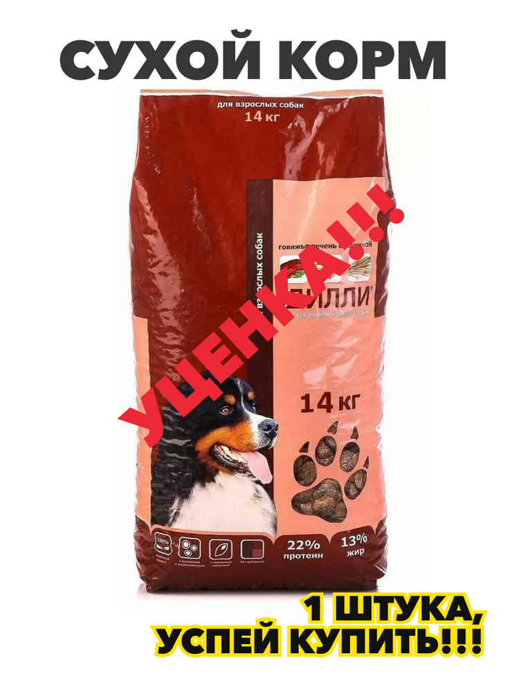 Корм сухой Дилли для взрослых собак полнорационный "Говяжья печень с овсянкой", 14 кг, n4147-688407