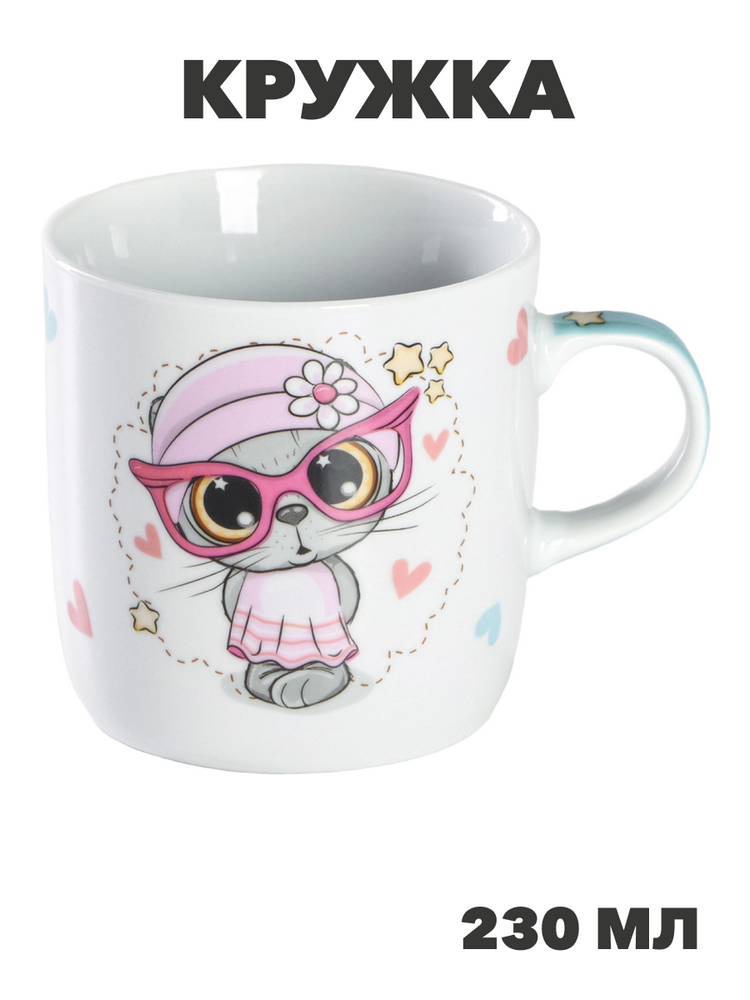 Кружка детская Доляна «Котик», 230 мл, керамика, белая, n3905-5034611