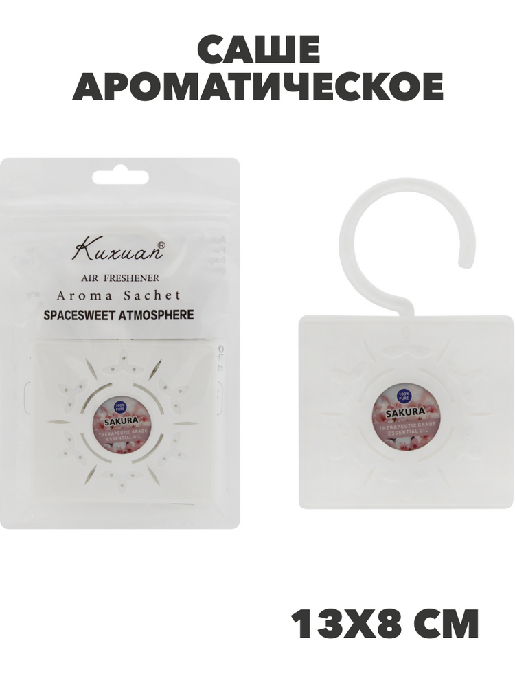 Ароматическое саше - это компактный и деликатный способ придать легкий и ненавязчивый аромат в любом помещении, шкафу или комоде, в автомобиле, а так же использовать в качестве подарка. С помощью специального крючка легко разместить саше на полке или штанге и радовать себя прекрасным настроением каждый раз.