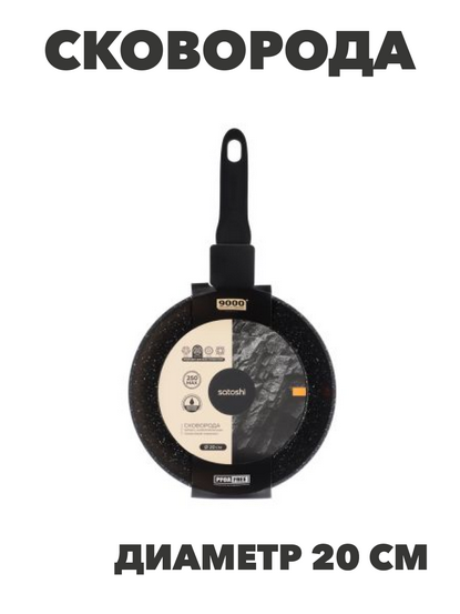 SATOSHI Стоун Сковорода литая d20см, антипригарное покрытие Мрамор, индукция, n3650-gl-846-332