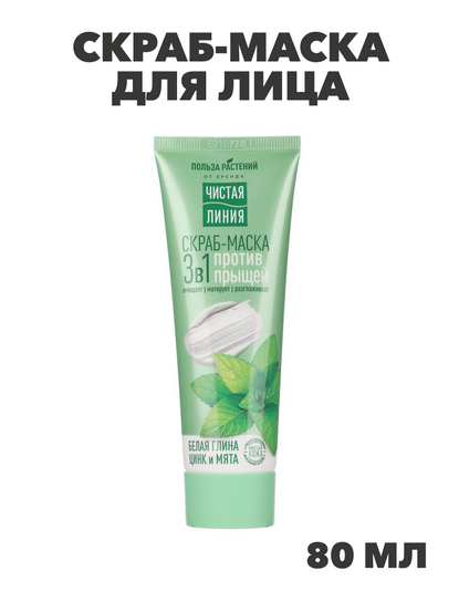 Скраб-маска для лица ЧИСТАЯ ЛИНИЯ 3 в 1, 80мл, n3602-gl-977-131