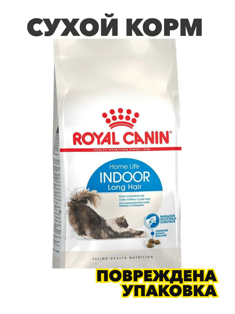 Сухой корм для длинношерстных кошек Royal Canin Indoor Long Hair, с птицей, 2 кг, n4251-112666