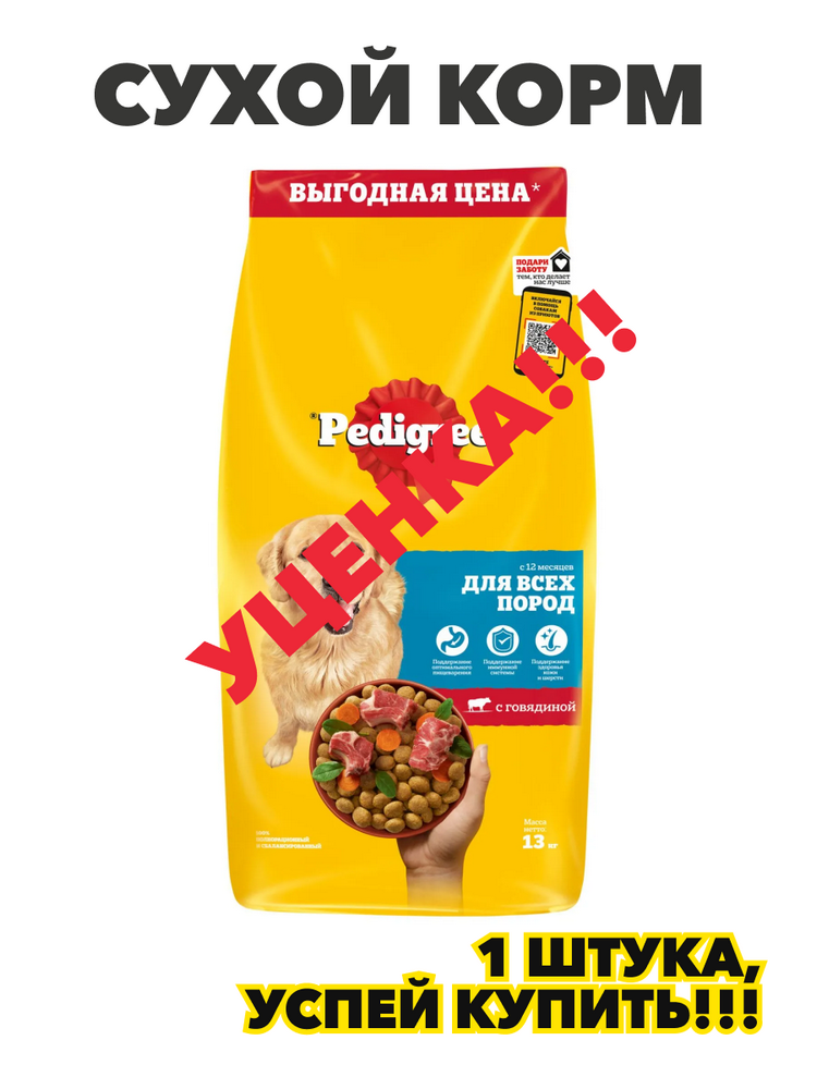 Сухой корм для собак Pedigree с говядиной, 13 кг, n4148-275242