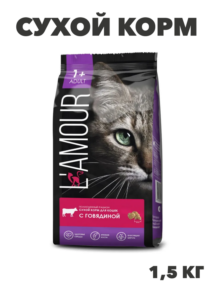 Сухой корм L'AMOUR для взрослых кошек, с говядиной, 1,5 кг, n4100-188777
