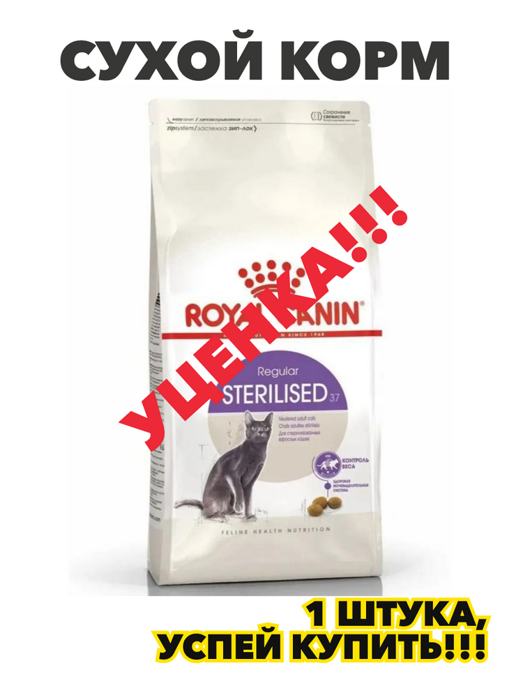 Сухой корм, Royal Canin Sterilised 37 сбалансированный для взрослых стерилизованных кошек всех пород в возрасте от 1 года до 7 лет, 1,2кг, n4155-168770