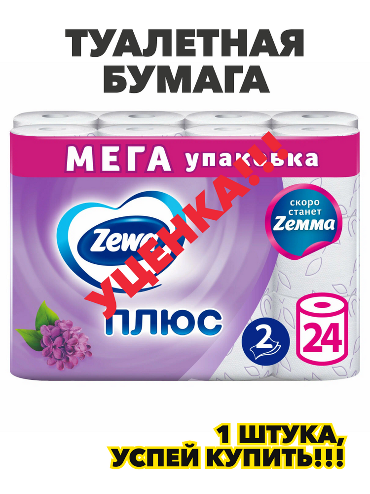 Туалетная бумага Zewa "Плюс", 2 слоя, аромат сирени, 24 рулона, n4160-468887