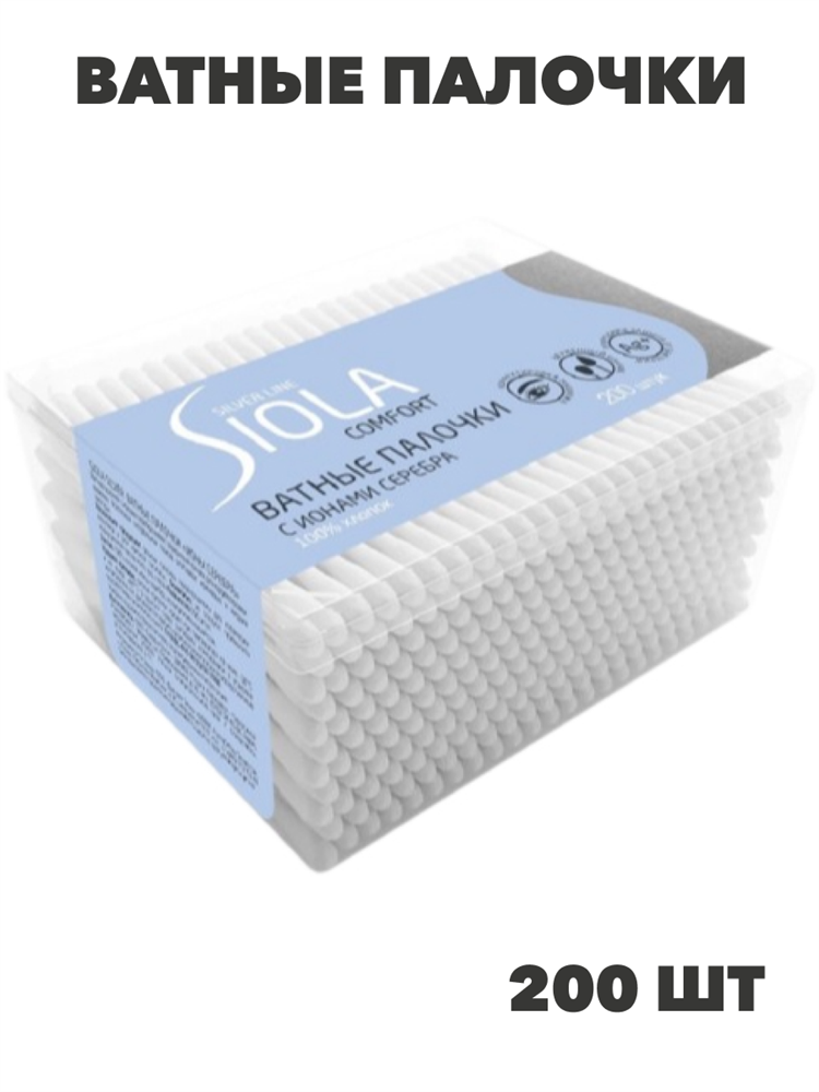 Ватные палочки SIOLA Silver Make-Up 200шт с ионами серебра, n3907-557394