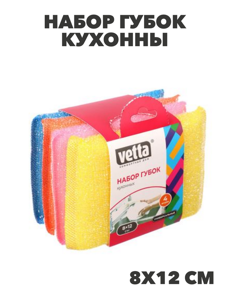 VETTA Набор губок кухонных, махровых, поролон, 4шт 8х12см, 4 цвета, n3735-gl-441-199