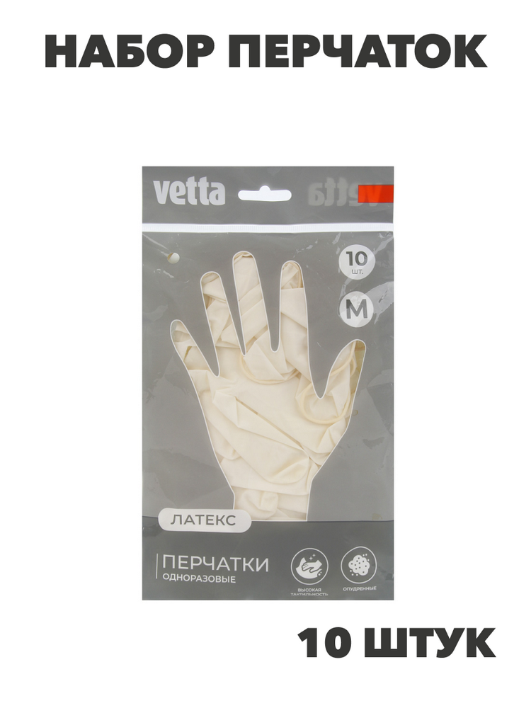 VETTA Набор перчаток 10 шт, латекс, р-р M, n3738-gl-447-029