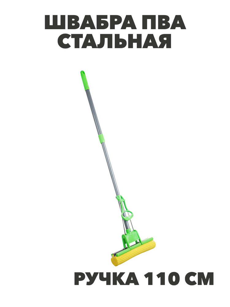 VETTA Швабра ПВА стальная телескоп. ручка, 110см, один ряд роликов – это эффективный инструмент для влажной уборки, который позволяет мыть пол, не контактируя руками с водой и моющими средствами, благодаря встроенному механизму отжима.