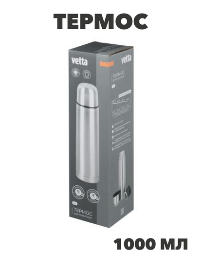 Термос VETTA "Буллет" объемом 1 литр – это надежное и долговечное решение для сохранения температуры ваших напитков в течение длительного времени. Он идеально подходит для использования в путешествиях, на работе, учебе или на природе
