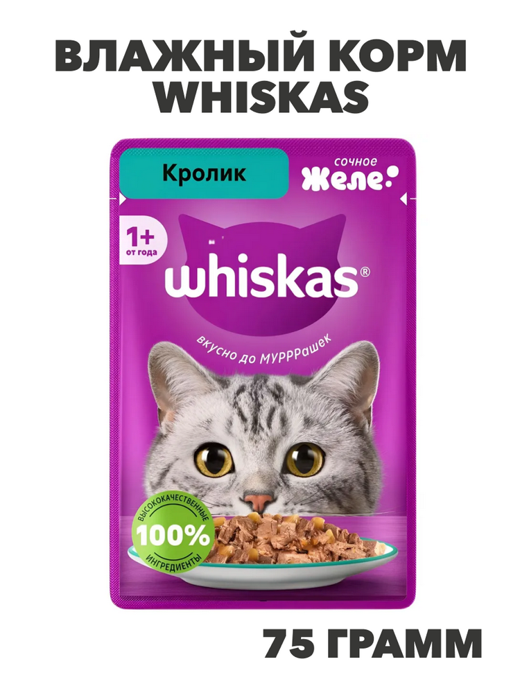 Влажный корм Whiskas 75 г для кошек Желе с кроликом, n4091-267969